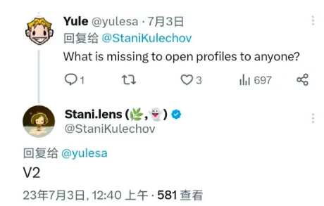 与此同时,Lens 仍然只对购买 Lens Handle NFT 或收到邀请的人开放,Stani Kulechov 也表示 Lens 很快就会开放。