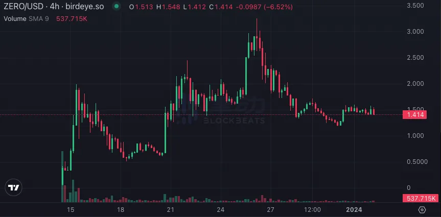 到这里,ZERO 不再是一个实验尝试,而是具有了「金铲子」的属性。ZERO 的价格也自 20 日起节节攀升,直到 22 日突破了 2 美元,两日跌去 60% 后,ZERO 又创下了两日涨幅超 250% 的成绩。