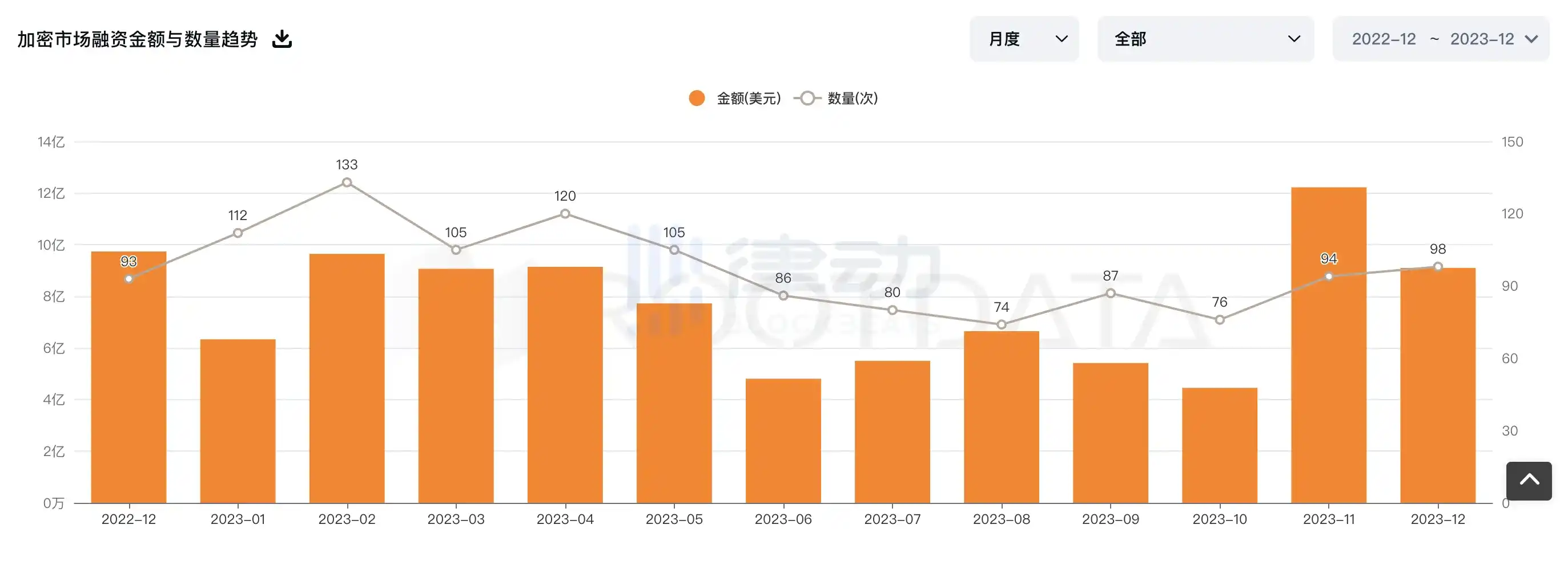 数据:2023 年 12 月加密市场融资额为 9.09 亿美元,同比下降 6.5%