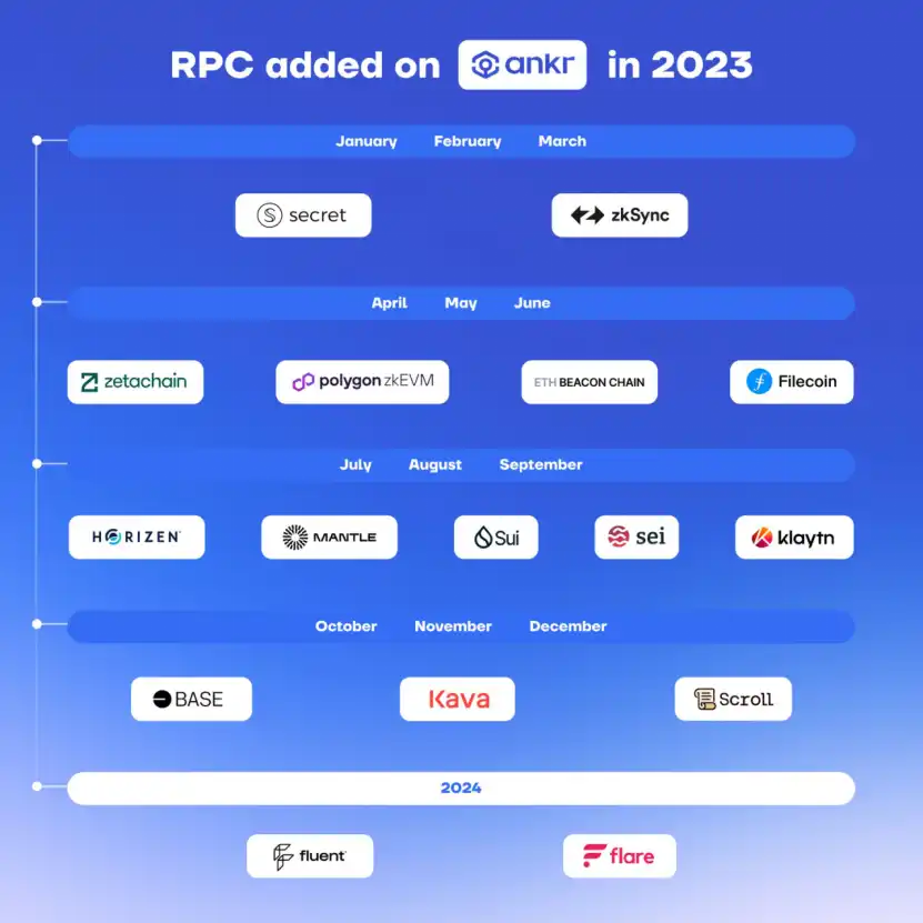 作为 Ankr 的旗舰服务,2023 年我们为开发人员和 dApp 用户提供了惊人的 RPC 请求处理服务。