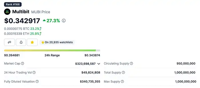 $MUBI 代币于 11 月 12 日在 bounce 进行了公开发售,代币分配情况如下: