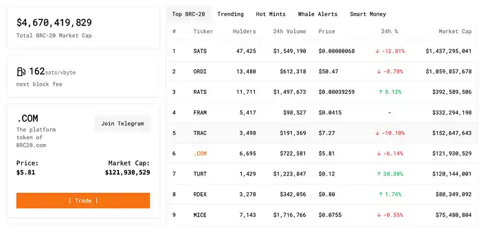该项目愿景为打造一个全方位的比特币网络生态 Super App,包括钱包、DEX、跨链桥、质押和其他 DeFi 解决方案等。项目目前已发布的产品有类似 Coingecko 风格的 DASHBORAD 平台,主要用于用户跟踪相关 BRC20 市场代币。