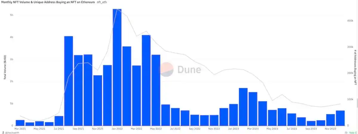 此外,2023 年 9 月,NFT 交易量达到了两年来的最低点。不过,最近 L2 的上升和对 NFT 用例表明,没有人能确定 NFT 未来会发生什么。