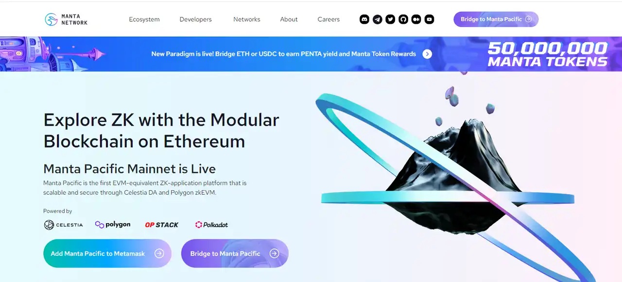 Manta 的 Rollup 于 23 年 9 月正式上线,但业务数据的起飞是在 12 月中旬推出 new paradigm 活动之后,目前链上资金总量(官方数据)已接近 7.5 亿。