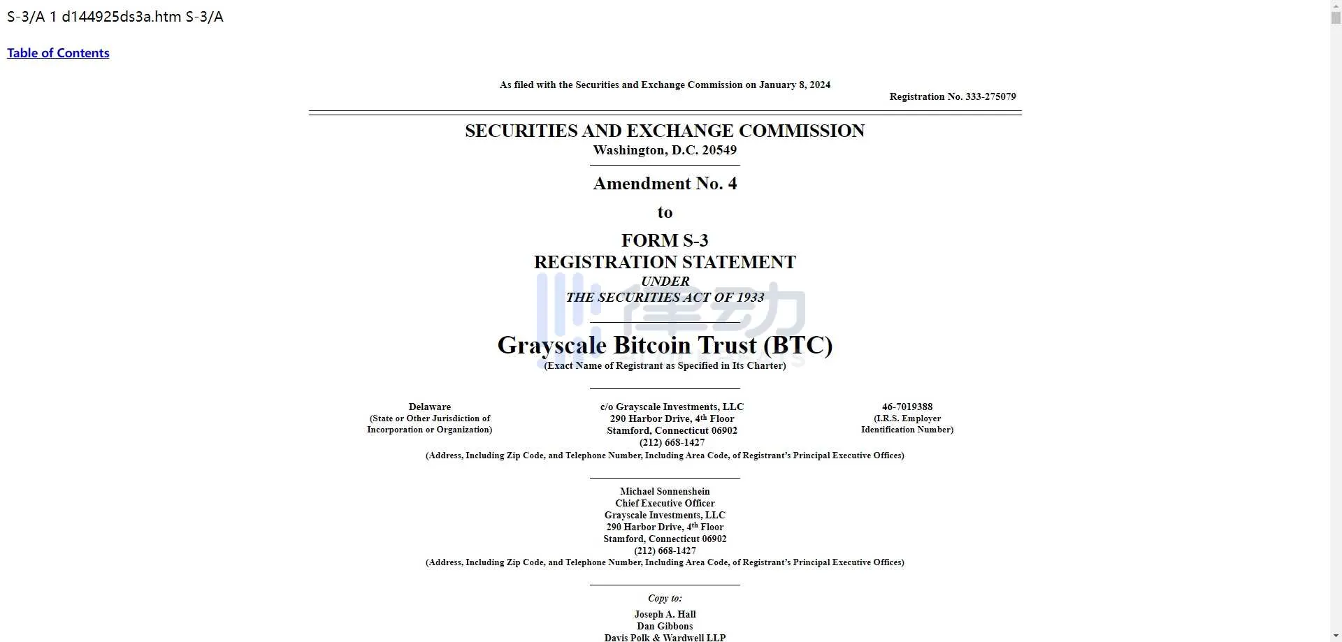 灰度提交其现货比特币 ETF S-3 申请的更新版本