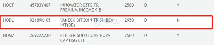 VanEck 比特币现货 ETF 代码 HODL 已在 DTCC 网站列出