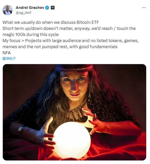 消息,1 月 8 日,DWF Labs 创始人 Andrei Grachev 在其社交平台表示,近期关于 ETF 的讨论很多,但短期市场涨跌其实并不重要,坚信比特币会在本轮周期达到 10 万美元。 此外,Andrei Grachev 表示,其个人重点关注拥有大量受众且没有上市的拥有良好基本面的项目,包括游戏和 meme 币等。