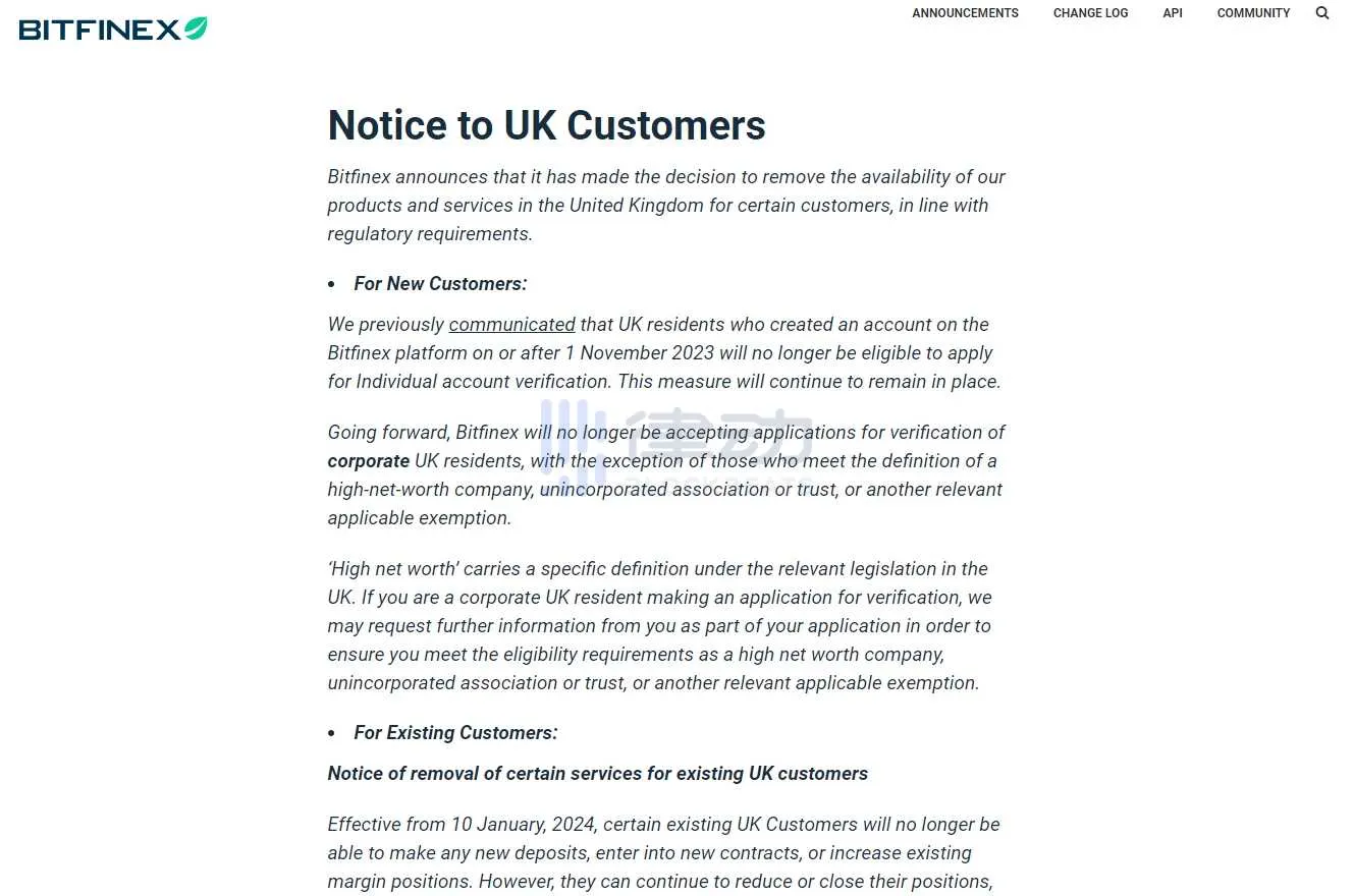 Bitfinex:按监管要求,将停止为英国部分客户提供产品和服务