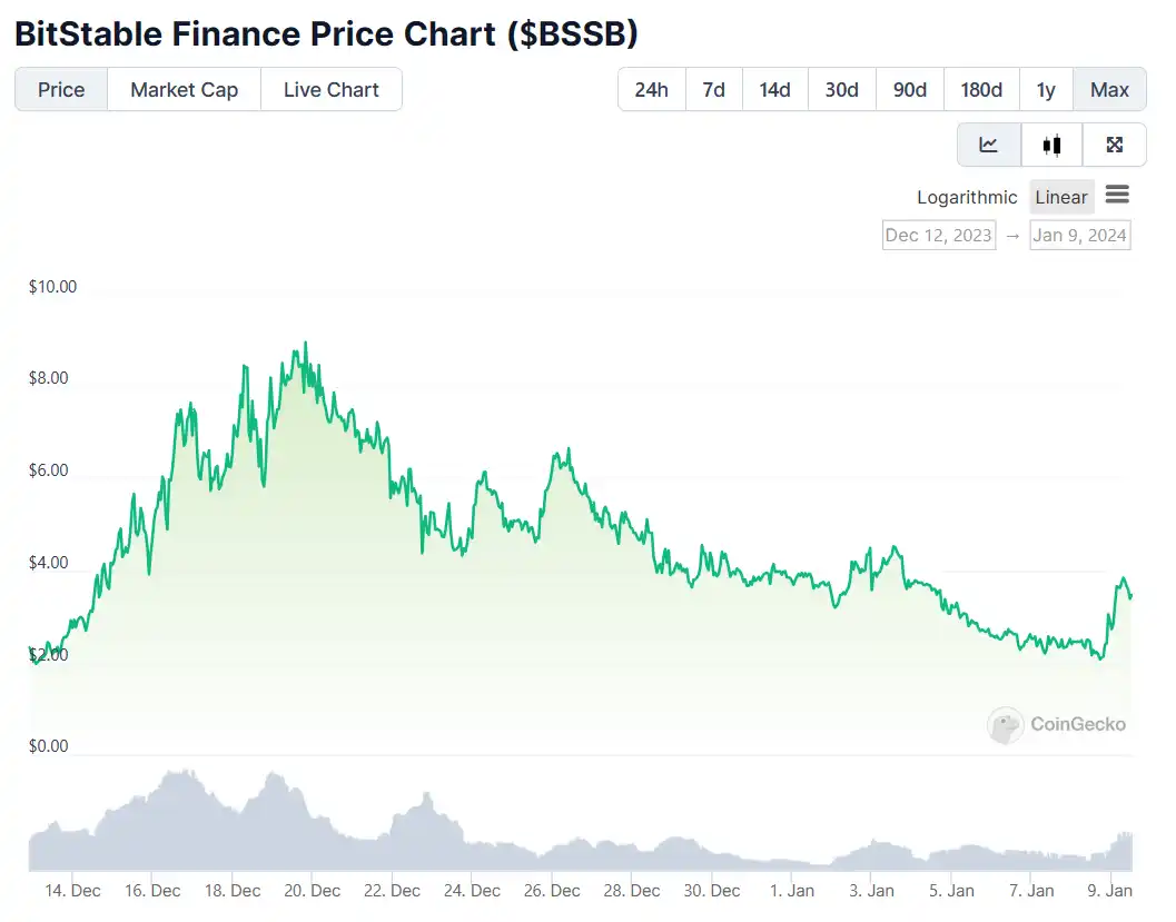 BitStable 曾于 2023 年 11 月 29 日 12 时在 Bounce Launchpad 上推出原生代币 BSSB,用户通过质押 AUCTION 代币或通过拍卖机制来获得相应的 BSSB 份额。在 Bounce Finance 宣布后两个小时内,AUCTION 的价格还曾实现了超 15% 的涨幅。