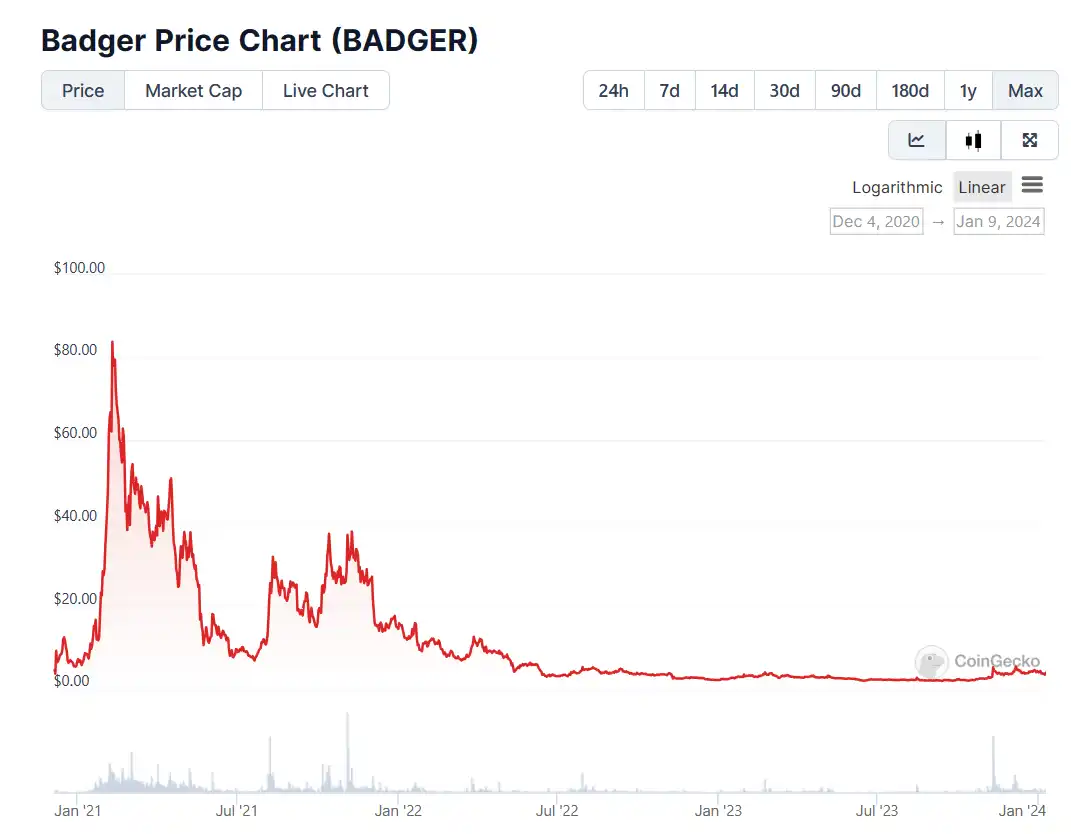 BADGER 背后的去中心化自治组织 Badger DAO 专注于将比特币引入 DeFi,并于 2023 年7 月 26 日发布了其 eBTC 协议的「紫皮书」,推出了一种抵抗审查的 DeFi 合成比特币。用户可以使用 Lido 的 stETH,以 0% 的利息、偿还费和启动费借用 eBTC,这种设计旨在为用户提供高效、经济的资产访问方式。