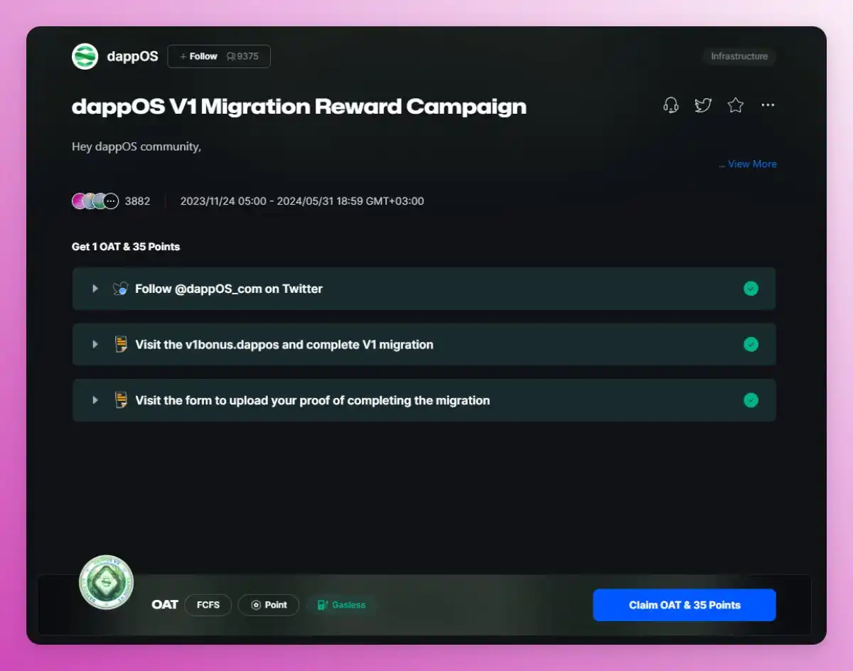领取 OAT –https://galxe.com/dappOS/campaign/GC91RtUVSG