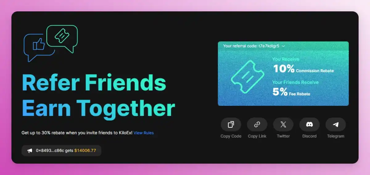 访问网站并了解如何获得更多积分:https://app.kiloex.io/airdrop