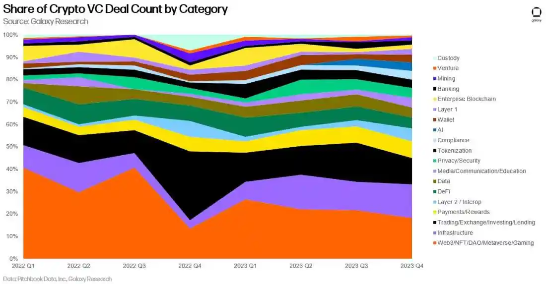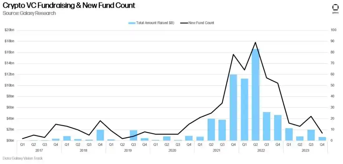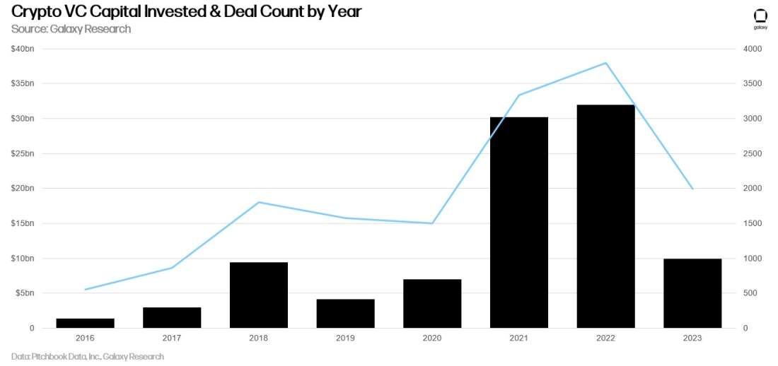 Galaxy Digital:2023年加密投资总量创新低,美国主导加密初创企业