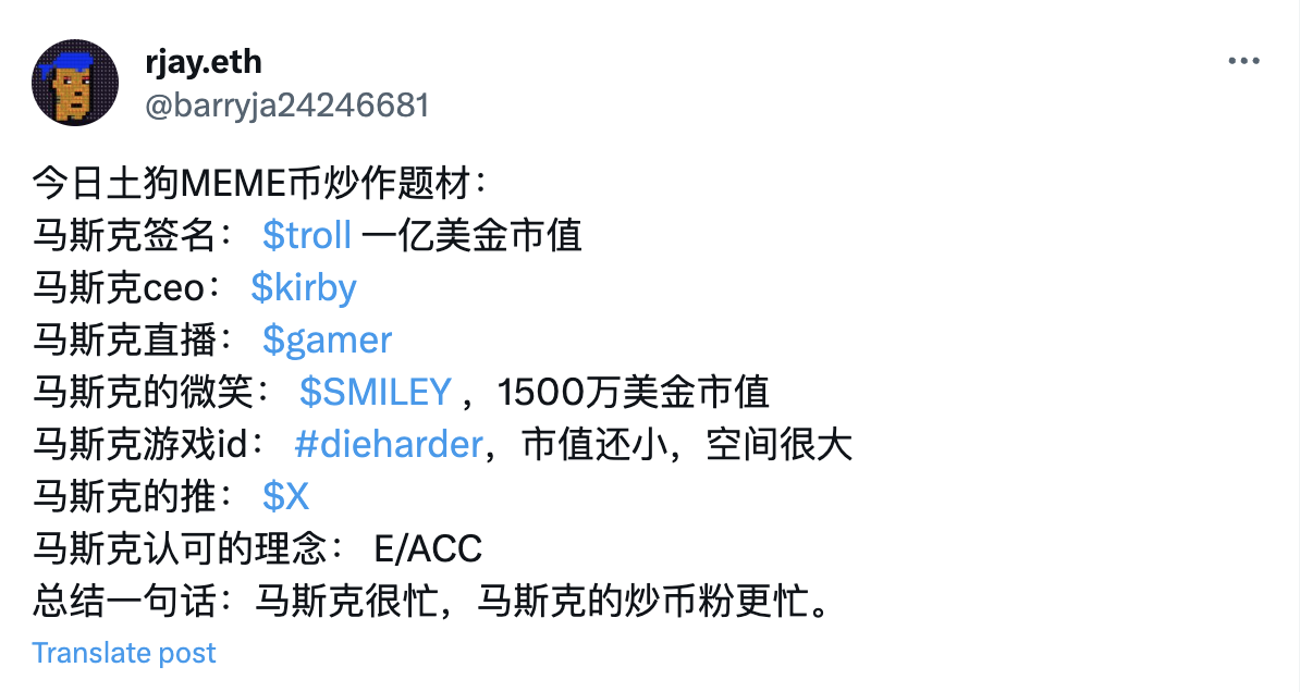 2024 年 1 月 9 日,马斯克将自己的推特个人介绍变成了 (CTO) chief Troll Officer,随后 TROLL 币价飙升。