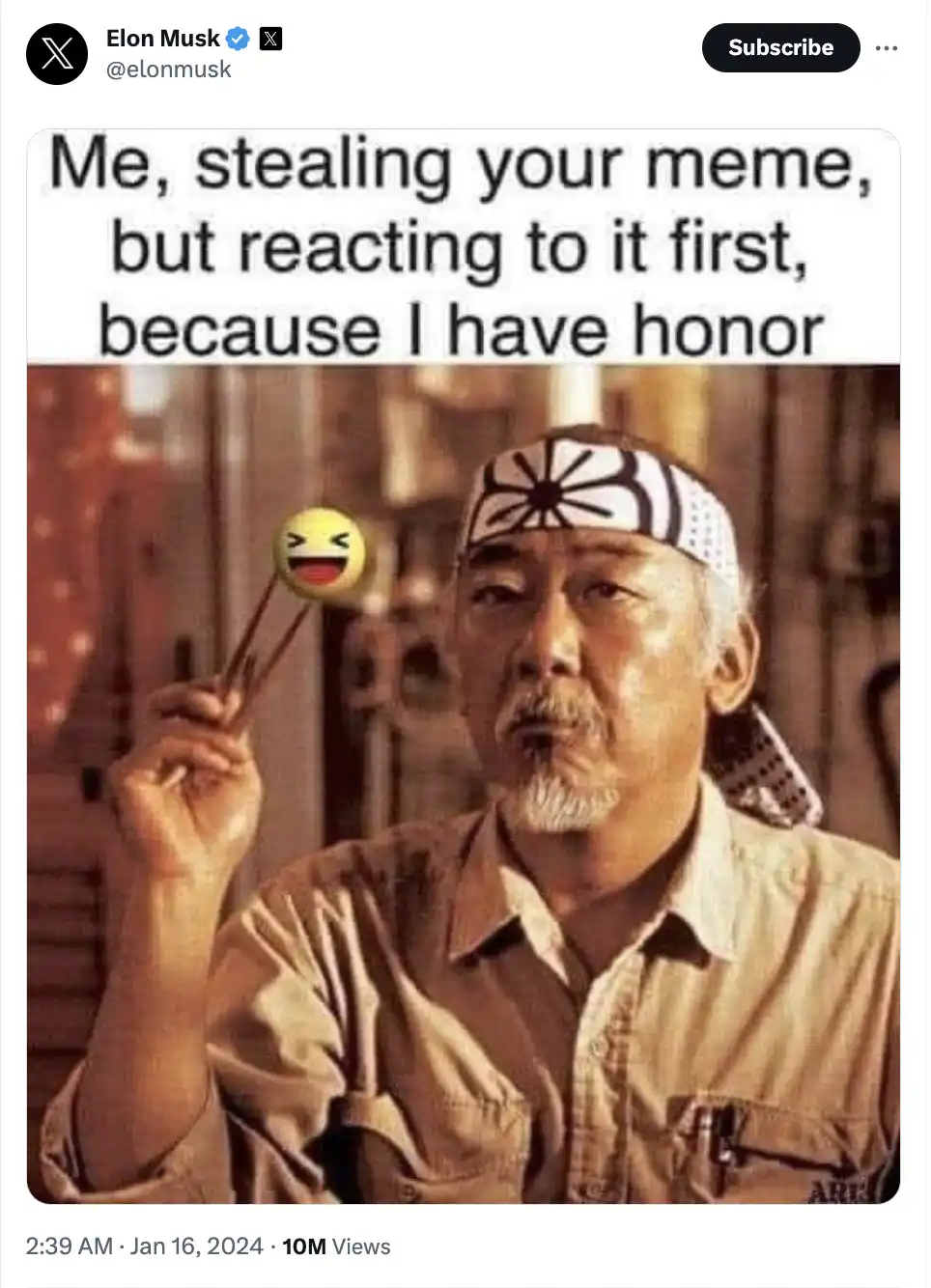 另一个与马斯克相关的 meme 币是 SMILEY,1 月 16 日凌晨,马斯克发布一张 meme 图,上面的文字因为包含「meme」和「笑脸」元素,SMILEY 随之价格拉升。