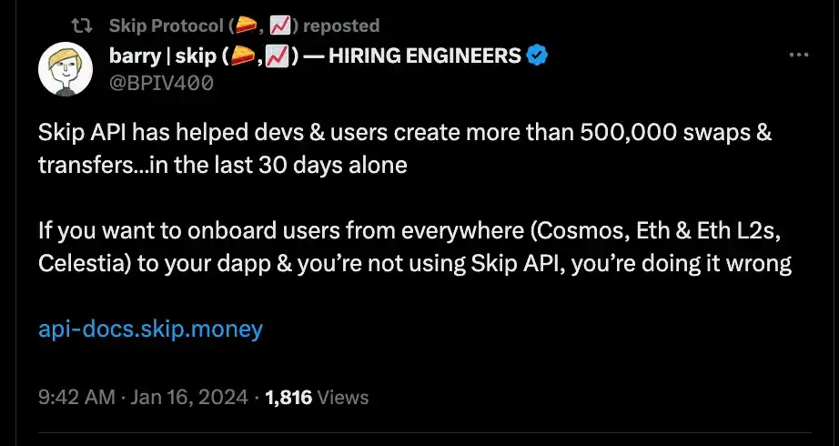 Skip 是 Celestia Baselayer 中的 ZK,并提供用于互操作性的 SDK