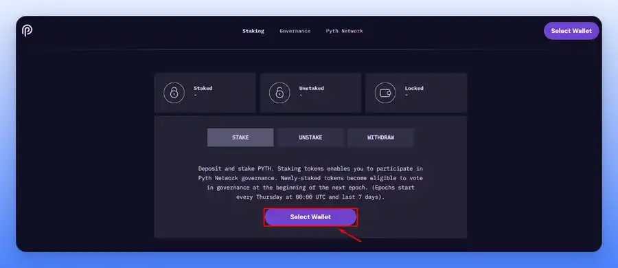 质押代币使您能够参与 Pyth 网络治理。新质押的代币有资格在下一个纪元(Epoch)开始时进行治理投票。(纪元于每周四 00:00 UTC 开始,持续 7 天)。