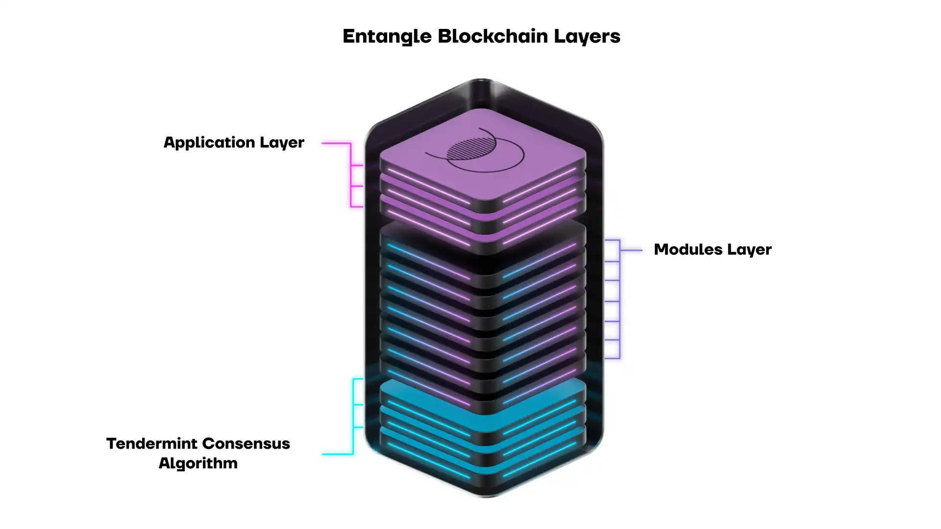 Entangle 区块链是基于 Cosmos SDK 构建的自定义区块链,托管 Entangle Oracle 解决方案和 Entangle DEX。它由 DPoS Tendermint 共识算法保护,并使用 NGL 作为其原生代币,分为应用层、模块层和核心层。Oracle 解决方案充当桥梁,使不同的链能够有效地沟通和共享信息。