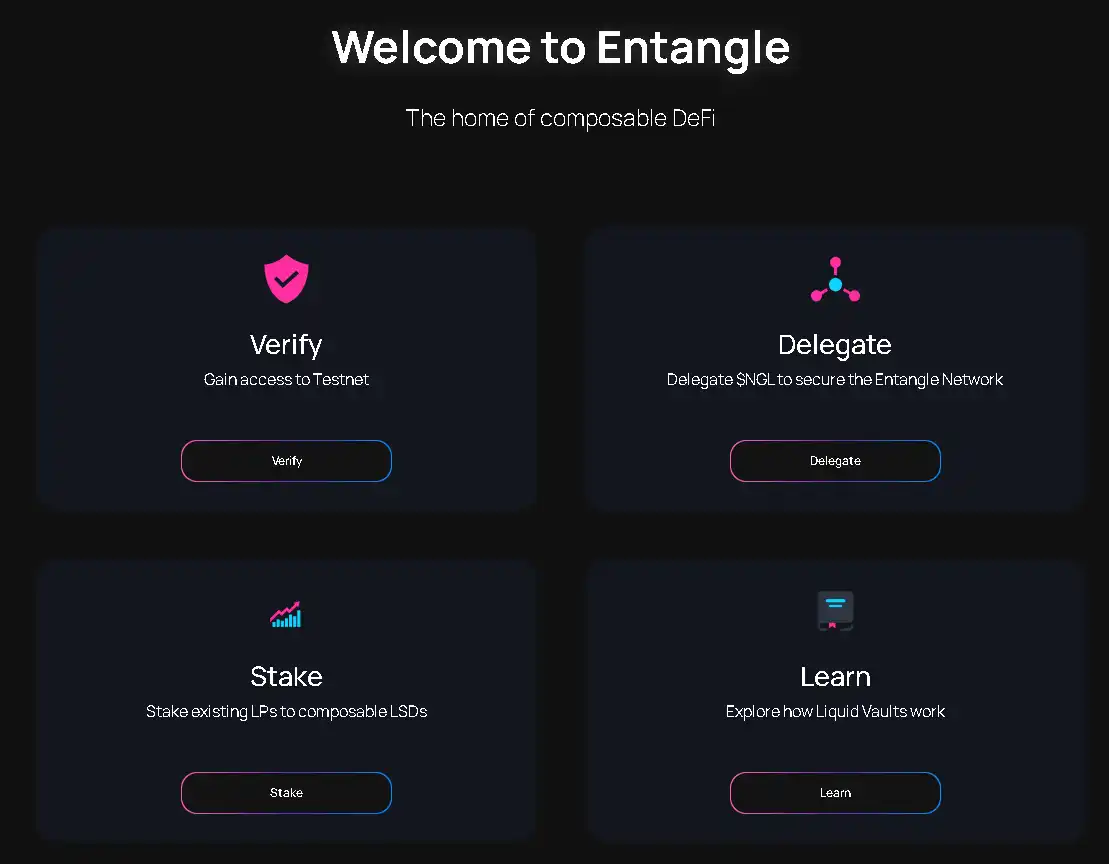 Liquid Vaults 则是一种允许用户创建收益资产 LSD 的协议。用户可以将其流动性代币(例如 LP 代币或质押代币)存入 Liquid Vault 并获得 LSD 作为回报。然后,用户可以再质押 LSD 以保护基础设施,或者在 Entangle DEX 上进行交换。