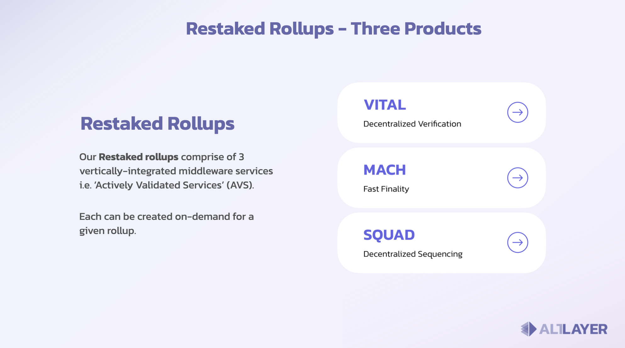 AltLayer 是基于重新抵押的 Rollups 解决方案,包括三个关键产品: