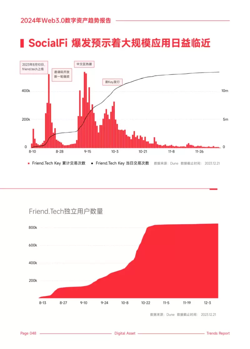 此外,SocialFi 的快速发展也预示着去中心化应用的大规模应用正日益临近。SocialFi 的核心在于结合社交网络与金融服务,创建一个更加透明、公平的社交经济体系。用户对于数据隐私和内容价值的日益关注,SocialFi 将在 2024 年引领一场关于数字身份、内容资产化和去中心化社交的新浪潮。