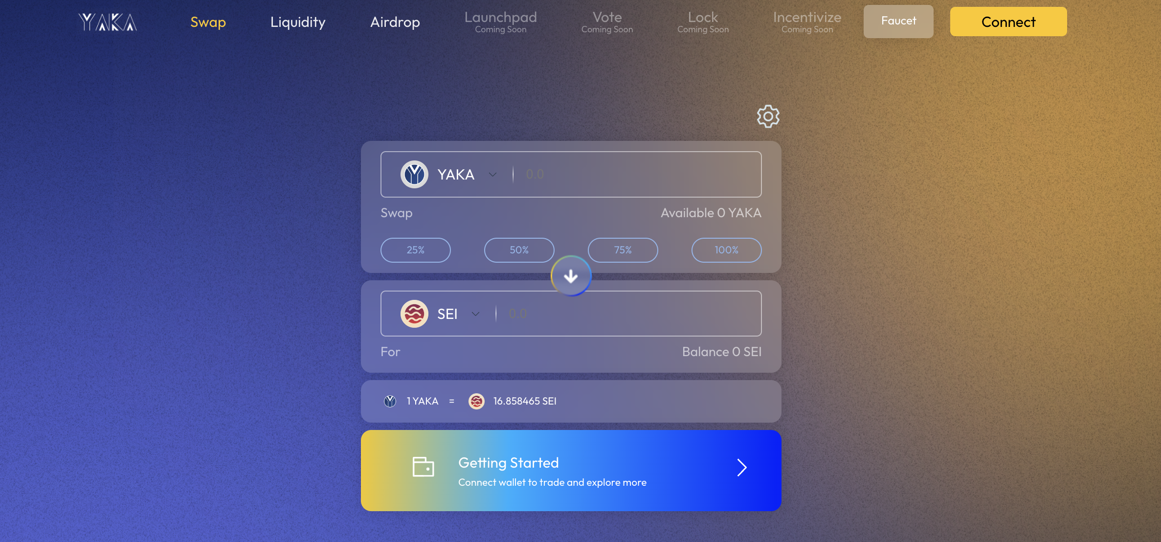 Yaka Finance 是一个结合了 Launchpad 的 Ve(3,3)DEX,曾获得「Code Sei」黑客松第一名,其利用 Sei 基金会的赠款完成项目早期启动阶段后旨在成为 Sei 网络的原生流动性中心。其功能代币为 YAKA、治理代币为 veYAKA。目前已经上线测试网,并且开放了 Airdrop 界面,用户可通过交互获取积分。