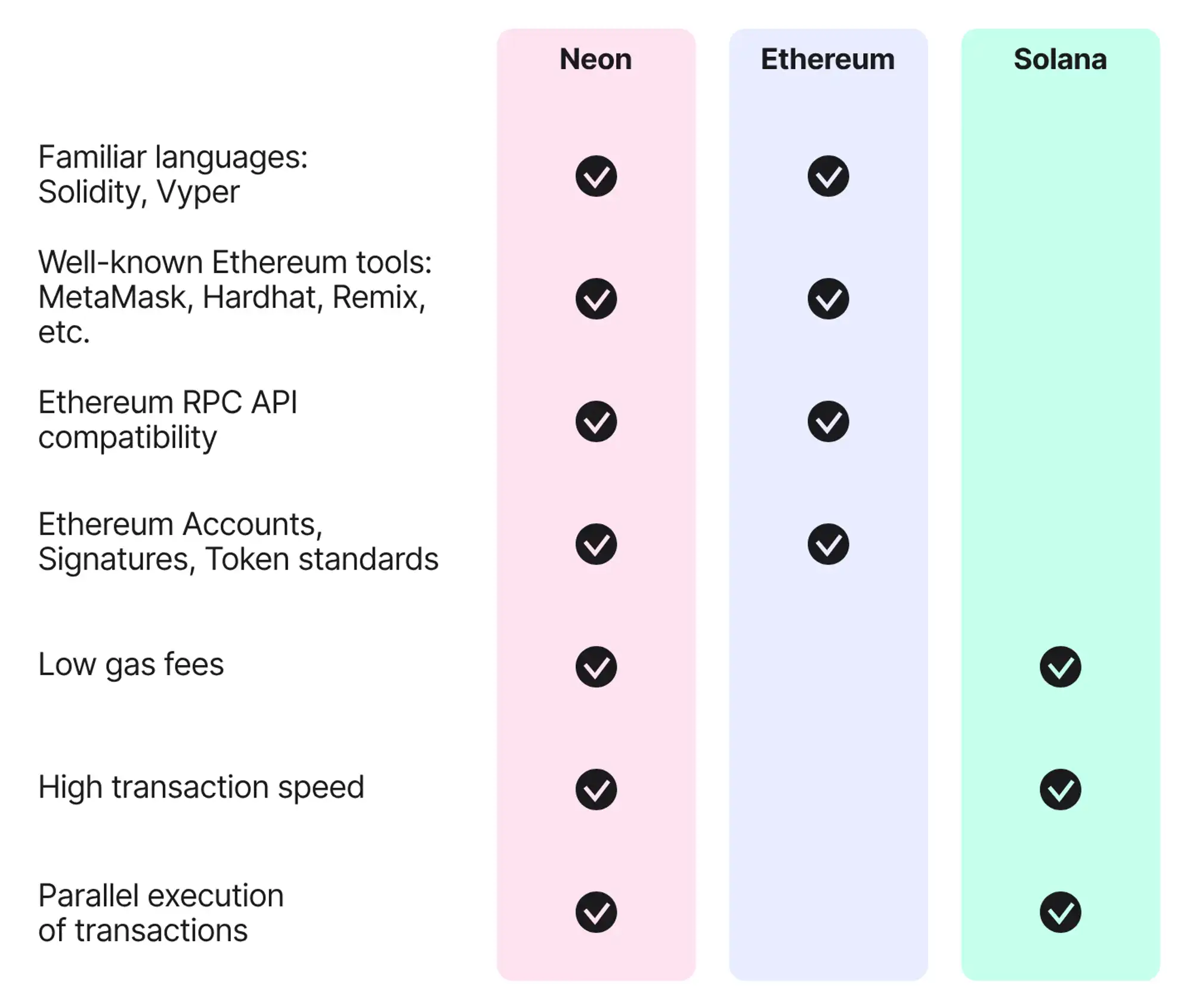 · Neon EVM 是在 Solana 上的平台,旨在为以太坊 dApps 提供高效、安全、去中心化的环境,允许开发者轻松部署和运行 dApps,同时利用 Solana 的高吞吐量和低成本优势。