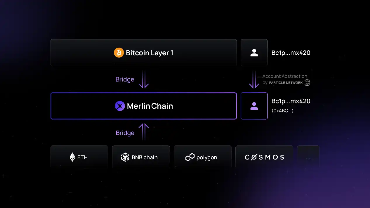这引入了「账户抽象」的需求,在 Merlin 和 Particle Network 的合作中,推出了 BTC Connect 的组件,用户在一层/二层的多链之间,可以继续使用自己的比特币钱包和地址,从而在体验上无缝衔接。