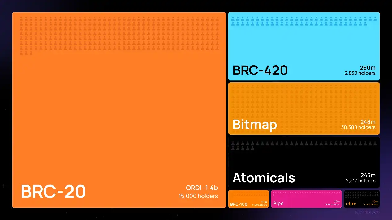 2023 年的比特币生态犹如平地惊雷,出现了大量的资产创新、协议创新和应用的组合创新。今天 BRC 资产的市值仍然只有 BTC 的 0.5%,一切才刚刚开始,更多比特币原生的创新还在等着被发掘。