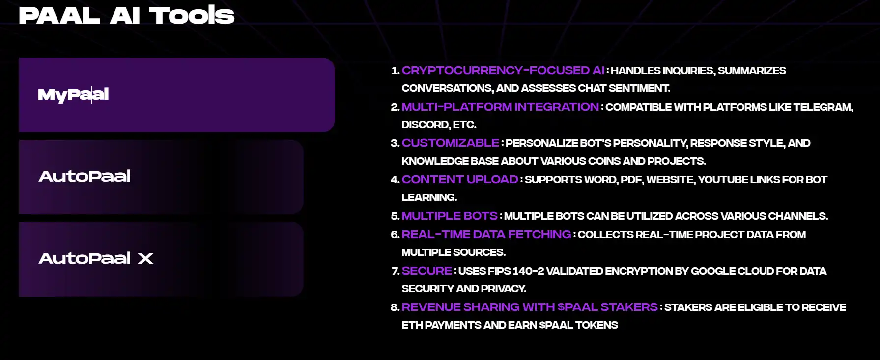 · Autopaal X(未上线):以上两个工具的高级版,增加了自动交易的功能,并且与 $PAAL 质押者分享收入,为质押提供额外激励。