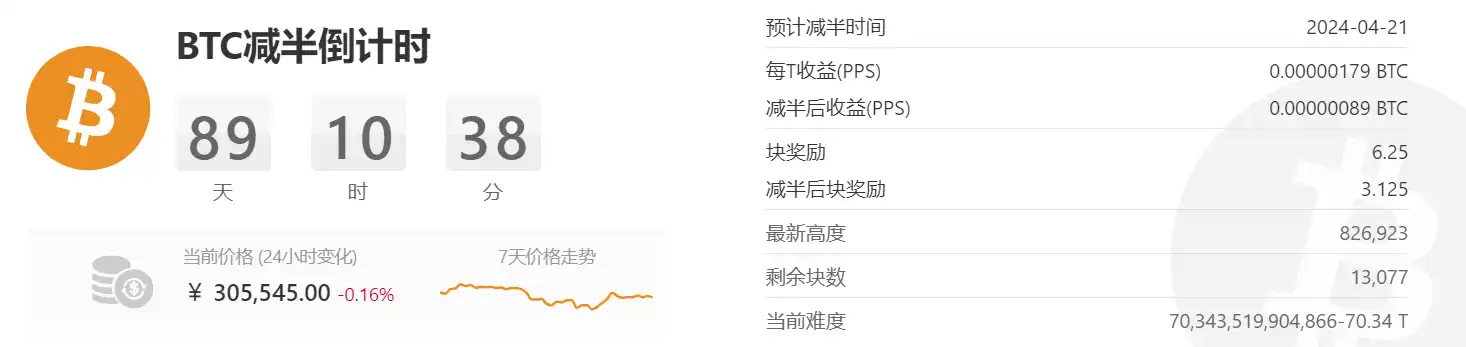 1 月 23 日,据 BTC.com 显示,当前区块高度距离比特币减半时间剩余已不足 90 天,由于每 21 万个区块就会发生一次减半,所以下一次比特币减半预计发生在 2024 年 4 月区块高度达到 840,000 之时,届时区块奖励将从 6.25 BTC 降至 3.125 BTC。
