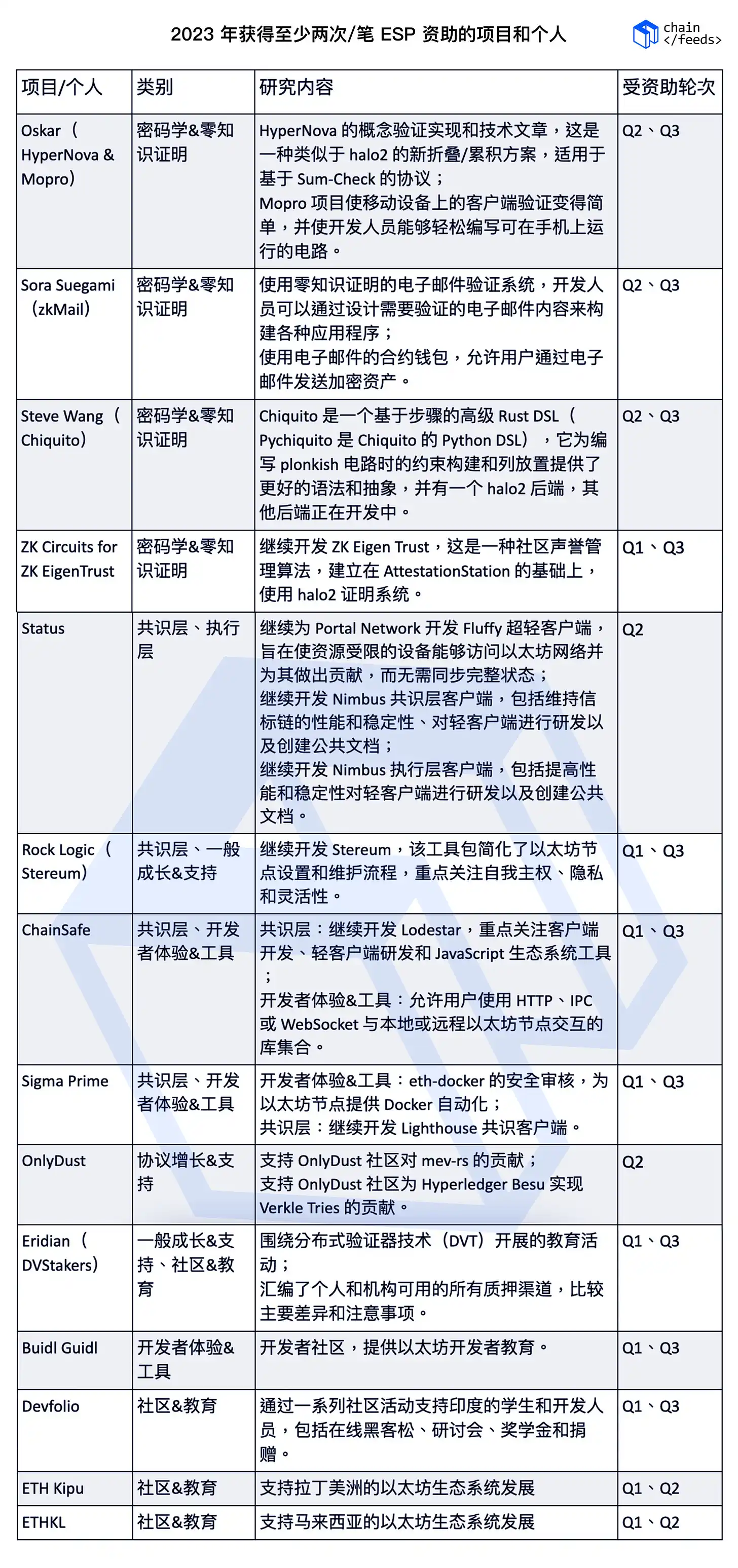 以下为 2023 年获得至少两次/笔 ESP 资助的项目和个人: