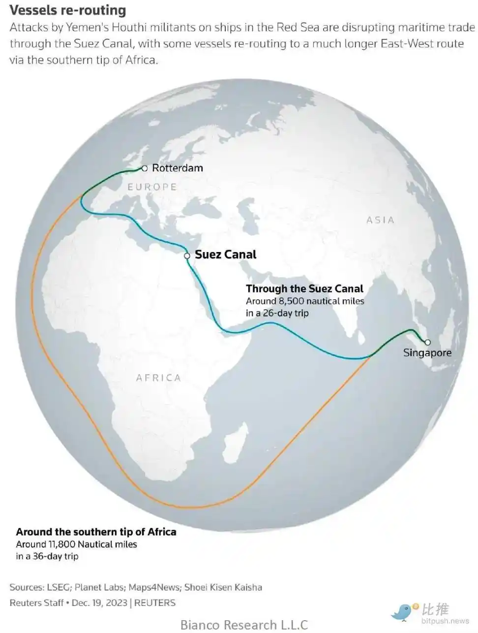 减少通过巴拿马运河的航运活动非常重要,因为美国正在将一些货物通过欧洲改道至东部沿海港口,以避免经过巴拿马运河。但是,鉴于装载在西方船只上的从亚洲到欧洲的货物现在必须绕过非洲而不是通过红海,运输成本和时间将会增加。