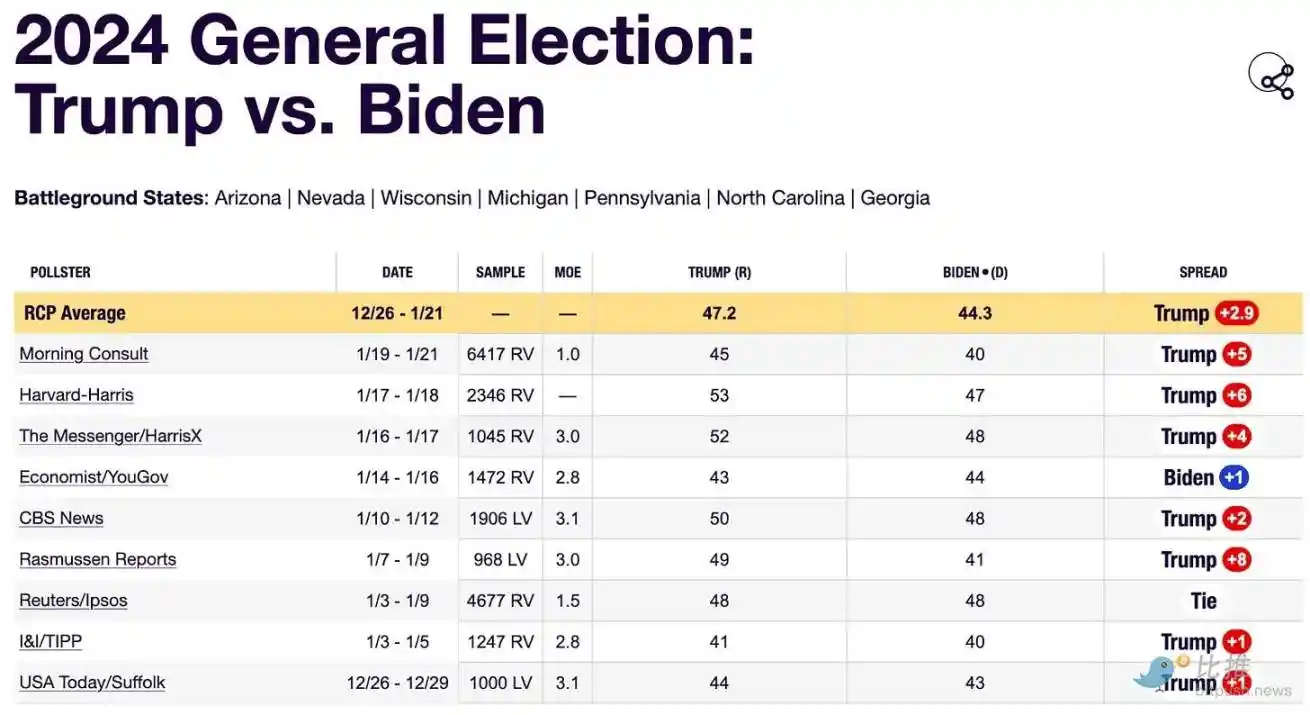 这就是为什么根据最新的民意调查,特朗普略微有可能击败拜登。
