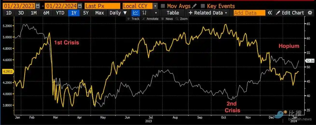 耶伦有机会在即将于 1 月 31 日发布的 QRA 中为市场注入更多活力。如果她宣布将把 TGA 从 7500 亿美元削减到零,那么我们就知道还有另一个市场没有预料到的流动性来源可以支撑市场。那么问题就变成了:一旦 BTFP 不更新,是否足以预防任何银行倒闭?