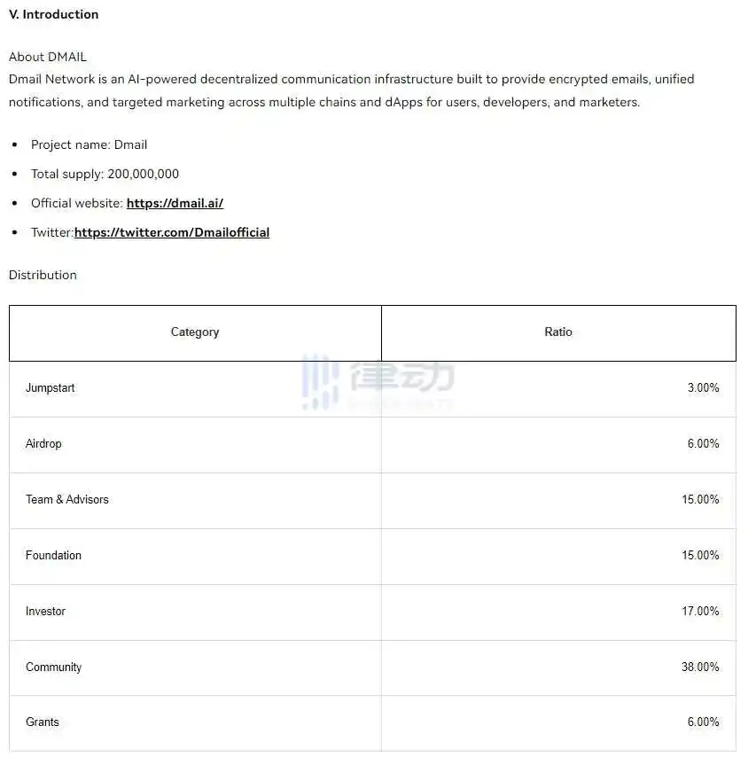1. Dmail Network 代币总量 2 亿枚,6% 将用于空投;