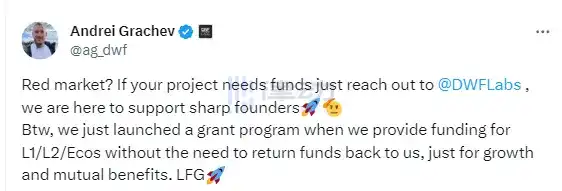 DWF Labs 管理合伙人 Andrei Grachev 发文称,DWF Labs 刚刚推出了一个赠款计划,为 L1/L2/Ecos 提供资金,无需返还资金,只为促进增长和互惠利益。