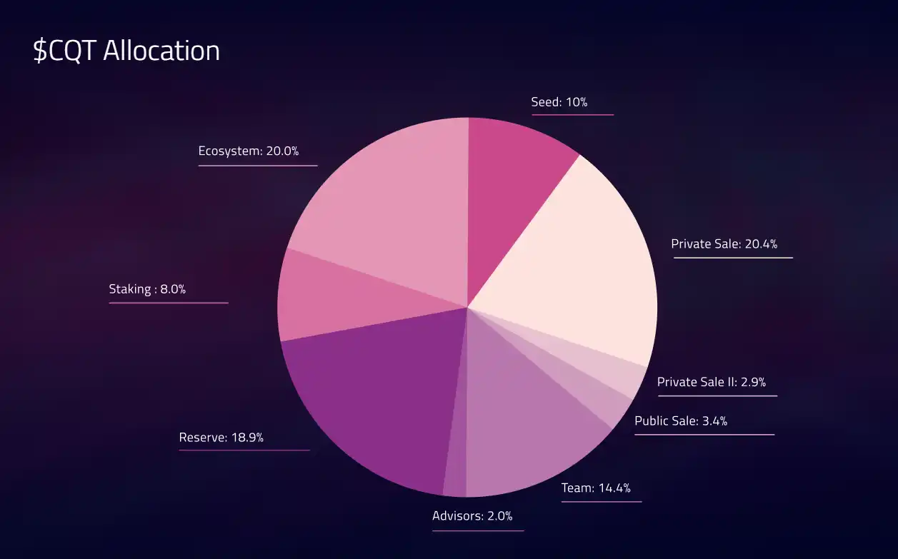 · 质押和验证:$CQT 是一种质押资产。验证者通过确保网络数据的完整性来获得费用。代币持有者可以委托给验证者,并通过参与安全机制获得收益。