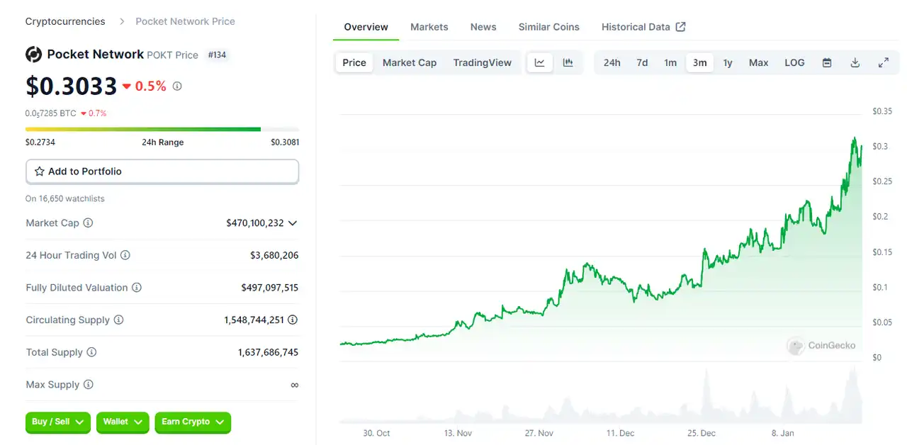 而与 Pocket Network 相比,Covalent 的收入水平更高,但估值更低,但基本处于同一数量级的估值——即几亿美金级别。不过 Pokt 在过去的 3 个月实现了近 12 倍的涨幅,完成了一轮惊人的「价值发现」。
