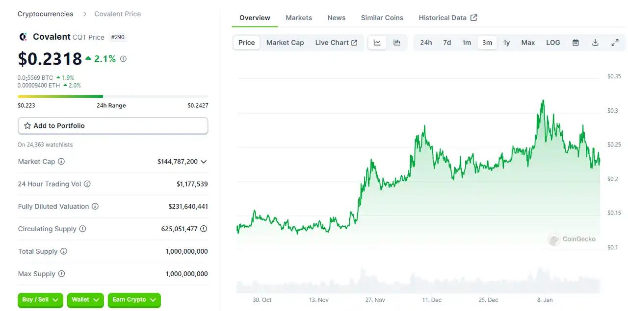 Covalent 代币总量为 10 亿个,具体分配方式如下: