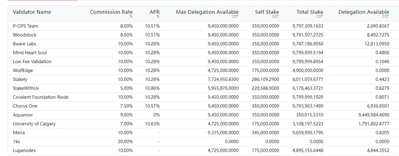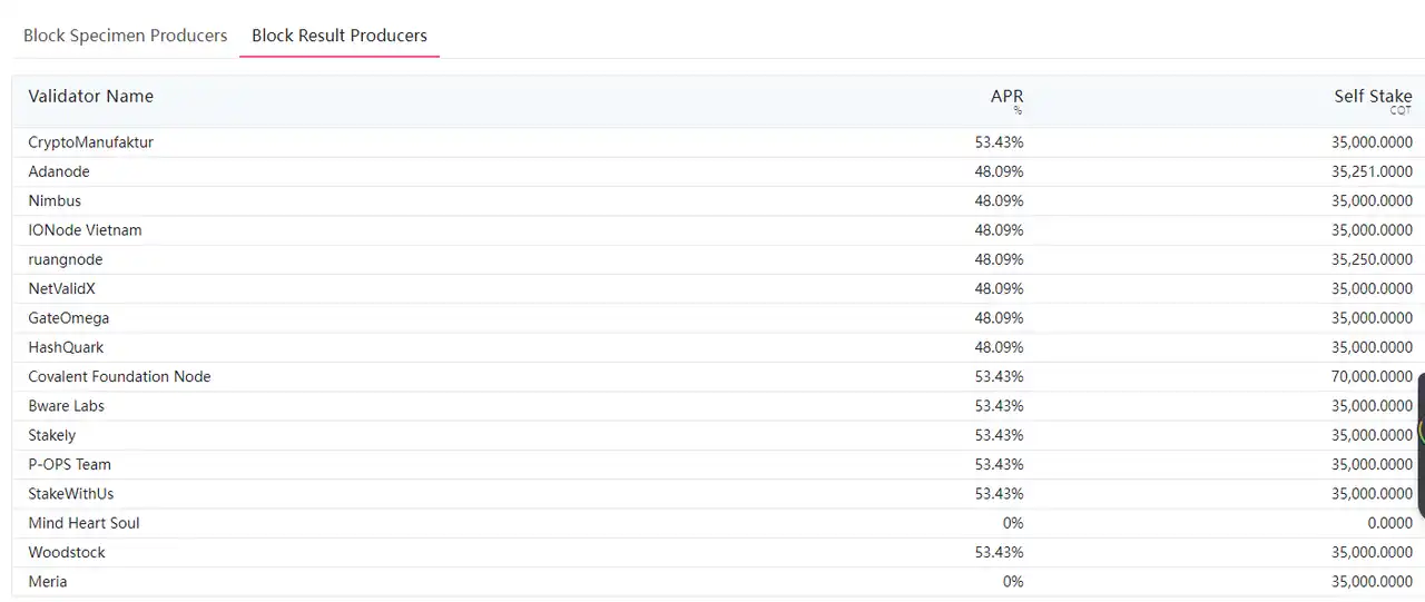 目前的运营者均由 Covalent 基金会设定的白名单角色担任,后续将逐渐开放给更多申请者: