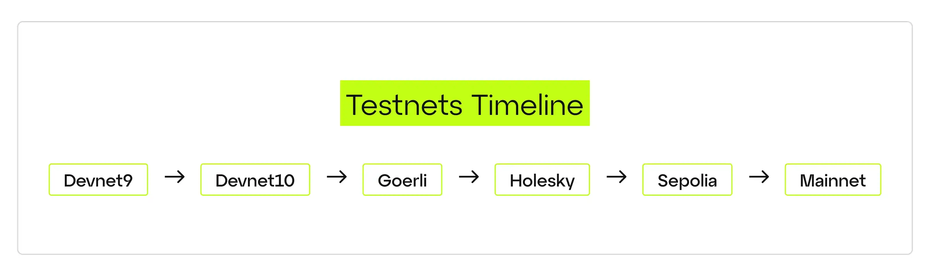 按照前期以太坊 ACDE 会议提供的路线,坎昆升级测试将按 Goerli、Holesky、Sepolia 等测试网顺序进行。