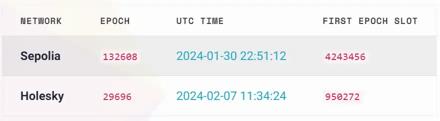根据 1 月 24 日,以太坊博客发布的坎昆升级进程显示,坎昆升级已于 1 月 17 日在以太坊 Goerli 测试网络上激活。并计划在 1 月 30 日和 2 月 7 日分别激活 Sepolia 测试网和 Holesky 测试网升级。