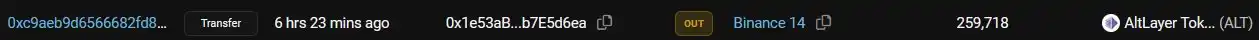 现在,如果你查看该地址的 erc20 交易,会注意到 ALT 代币被发送到另一个 0x1e53ab 开头的地址,