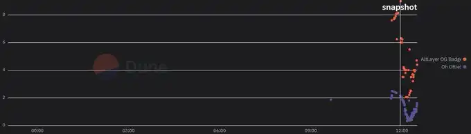 oh otties 和 OG 徽章活动在推文发布前 15-20 分钟激增,如此看来,在原本应该风平浪静的一天,快照公告很可能已经被泄露,但并不是指快照时间本身。