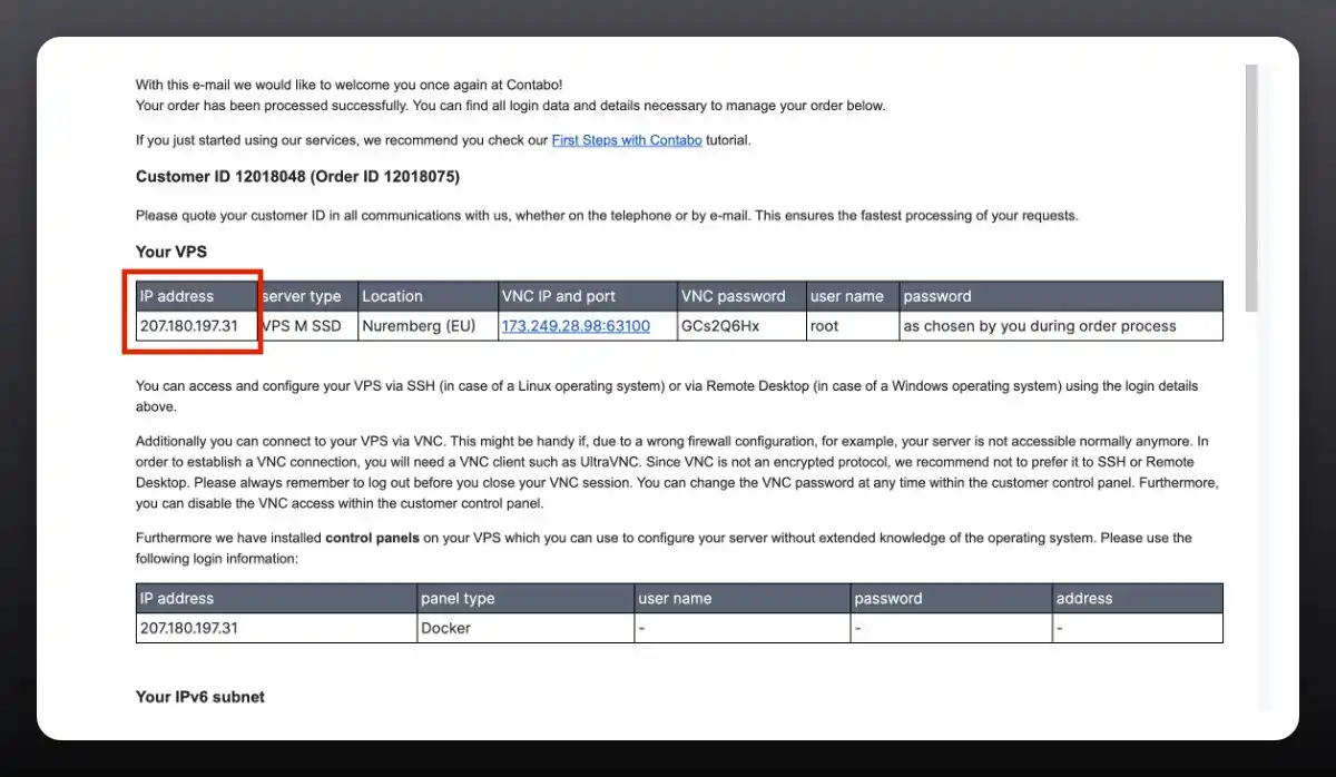 在 15-60 分钟内将收到一封包含 VPS 详细信息的电子邮件。