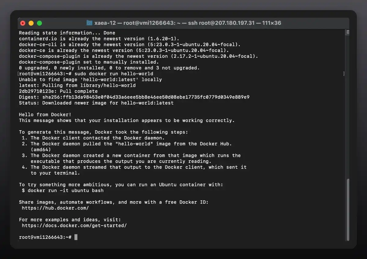 要检查一切是否正常,请运行:sudo docker run hello-world