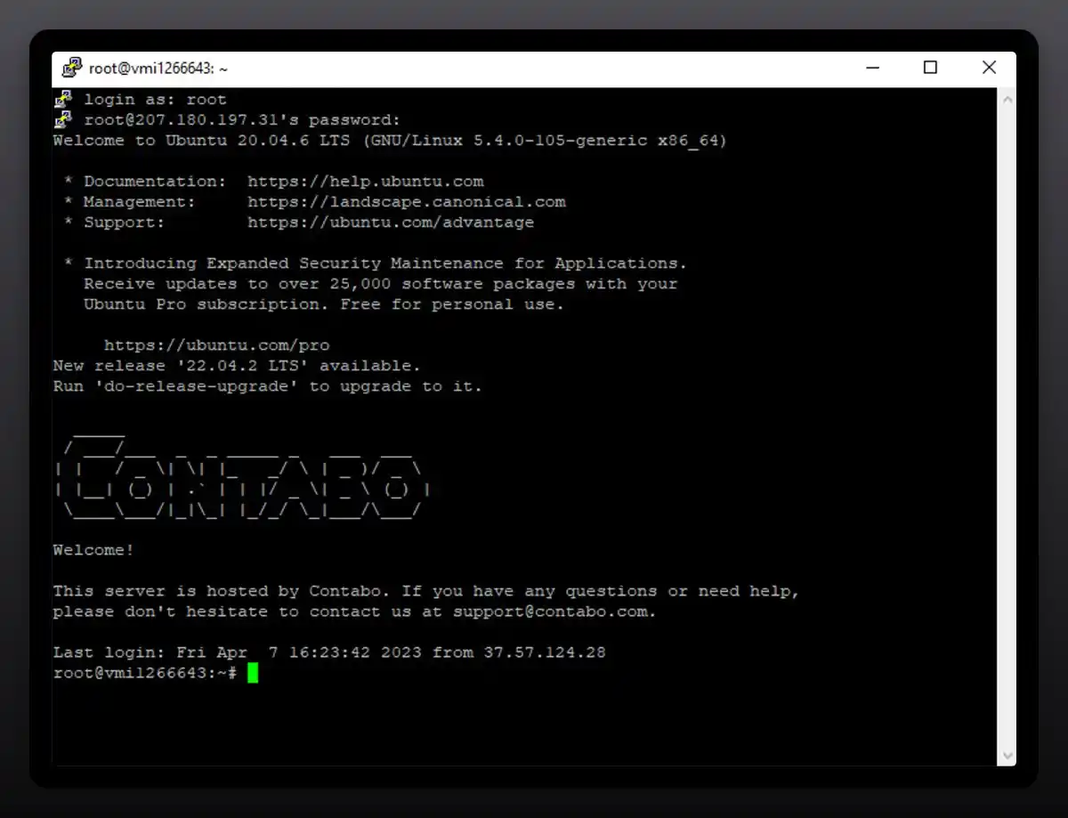 · 输入「Root」,然后按 Enter 键。接下来,输入您在 Contabo 创建的密码。
