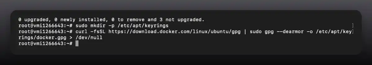 curl -fsSL https://download.docker.com/linux/ubuntu/gpg| sudo gpg --dearmor -o /etc/apt/keyrings/docker.gpg > /dev/null