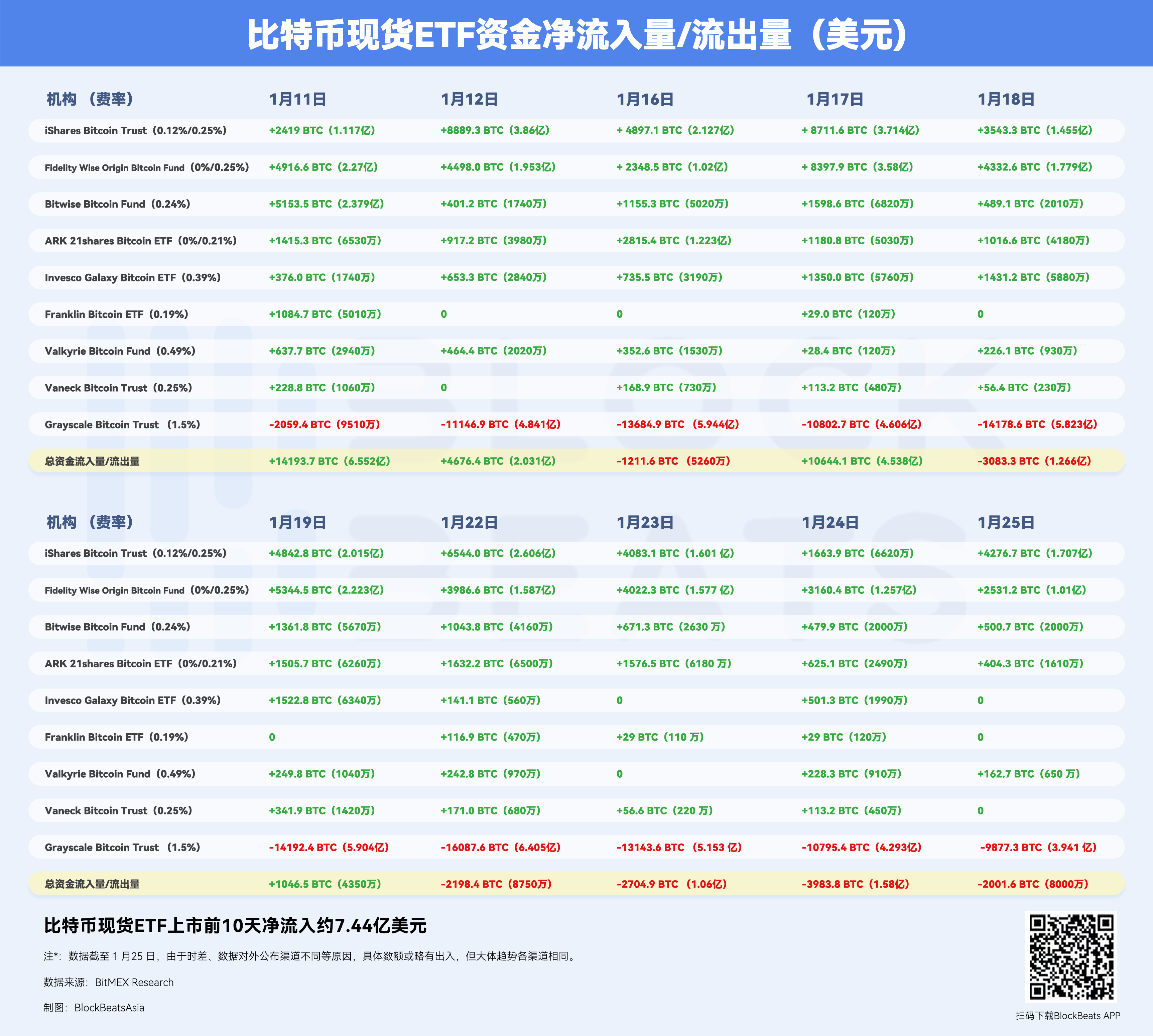 比特币现货 ETF 通过 10 天,总资产管理规模达 271.06 亿美元,仅灰度持续流出